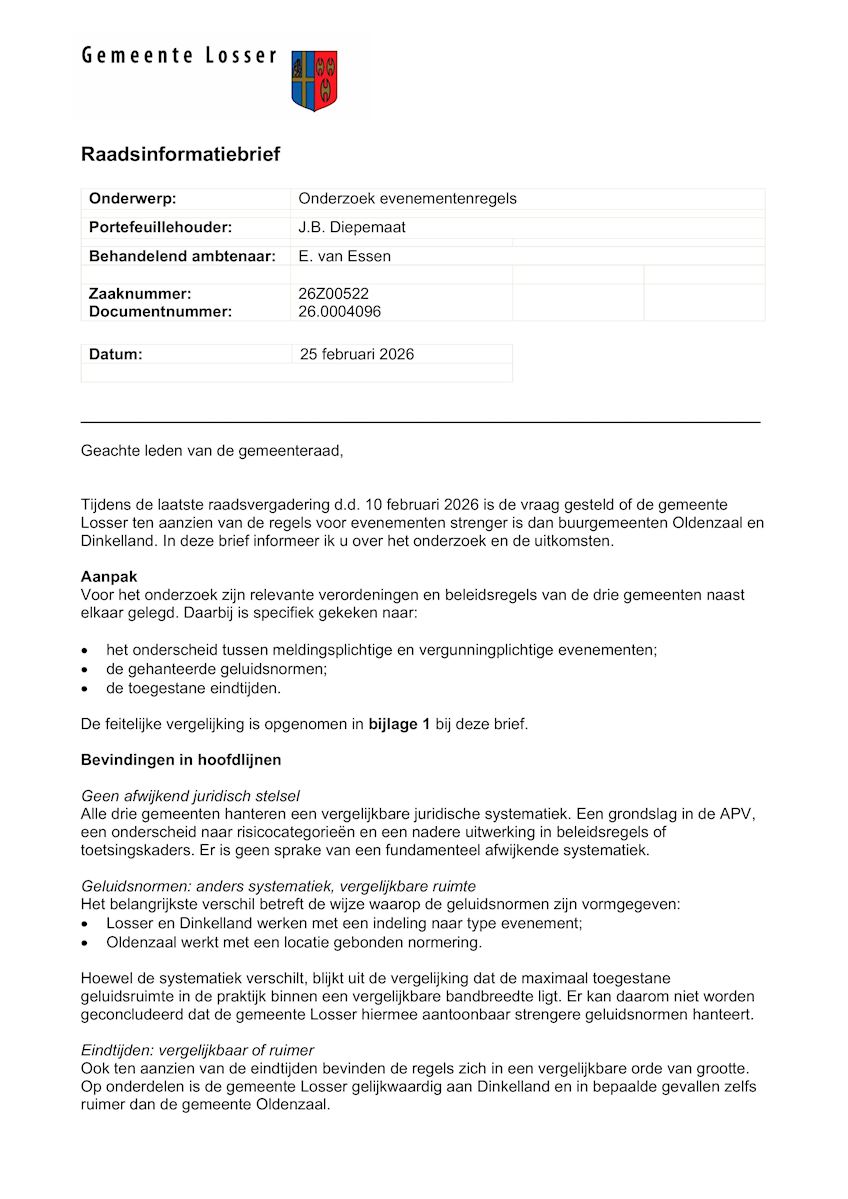 Raadsinformatiebrief Onderzoek Evenementenregels