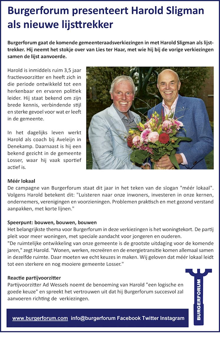 En dat is nog maar een greep uit de dossiers waar we ons dagelijks hard voor maken – altijd in het belang van Losser.